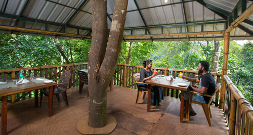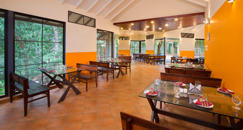 The resort's multi-cuisine restaurant is set on the slope above the rows of villas and looks out at spectacular views of mountains stretching to the horizon. Elegantly furnished with gracious service, the restaurant serves pan- Indian cuisine.